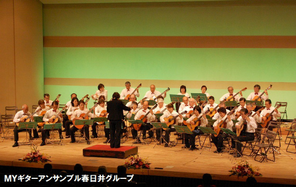 今回の会の主催団体である、地元のMYギターアンサンブル春日井グループ(川久保勲/指導)は、「グリーンスリーブズ幻想(川久保編)」など演奏し、日頃の練習の成果を発揮された。安城ギタークラブ(山村至/指導)は、「調和の霊感No.8全楽章(ヴィヴァルディ)」と大変期待されていたが、台風で棄権し残念。金山ギターアンサンブルはアルトギター~ギタロンの編成で、「故郷を離るる歌」など爽やかなサウンドを聴かせた。初出場のGreen