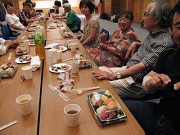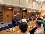 有志の方々に手伝っていただいて会場を後片付けし、総勢13名の「打ち上げ茶話会」に移りました。飛