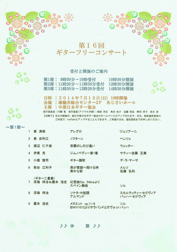 第14回ギターフリーコンサート主催 中部日本ギター協会